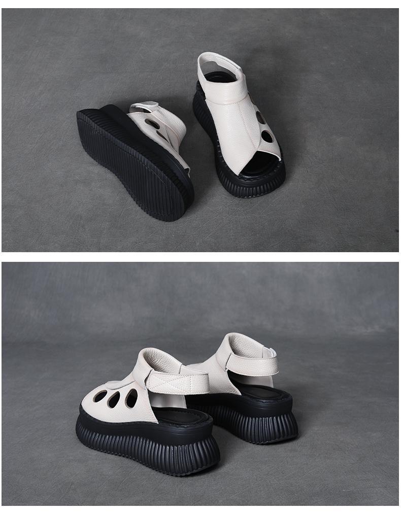 Velokicks Beige Cowhide Fish Mouth Thick Bottom Shoes