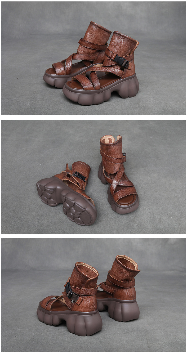 Velokicks Brown Cowhide Hollowed Out Roman High Heeled Sandals