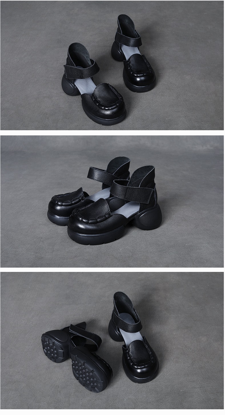 njxdsy Black Leather Thick Bottom Chunky Heel Baotou Sandals