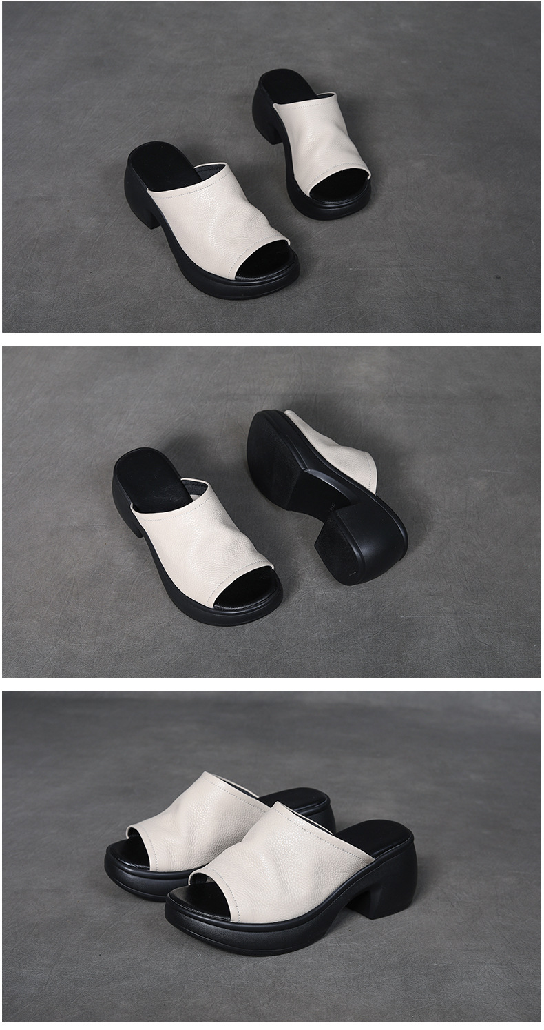 njxdsy White Genuine leather thick high heel one word slippers simple models