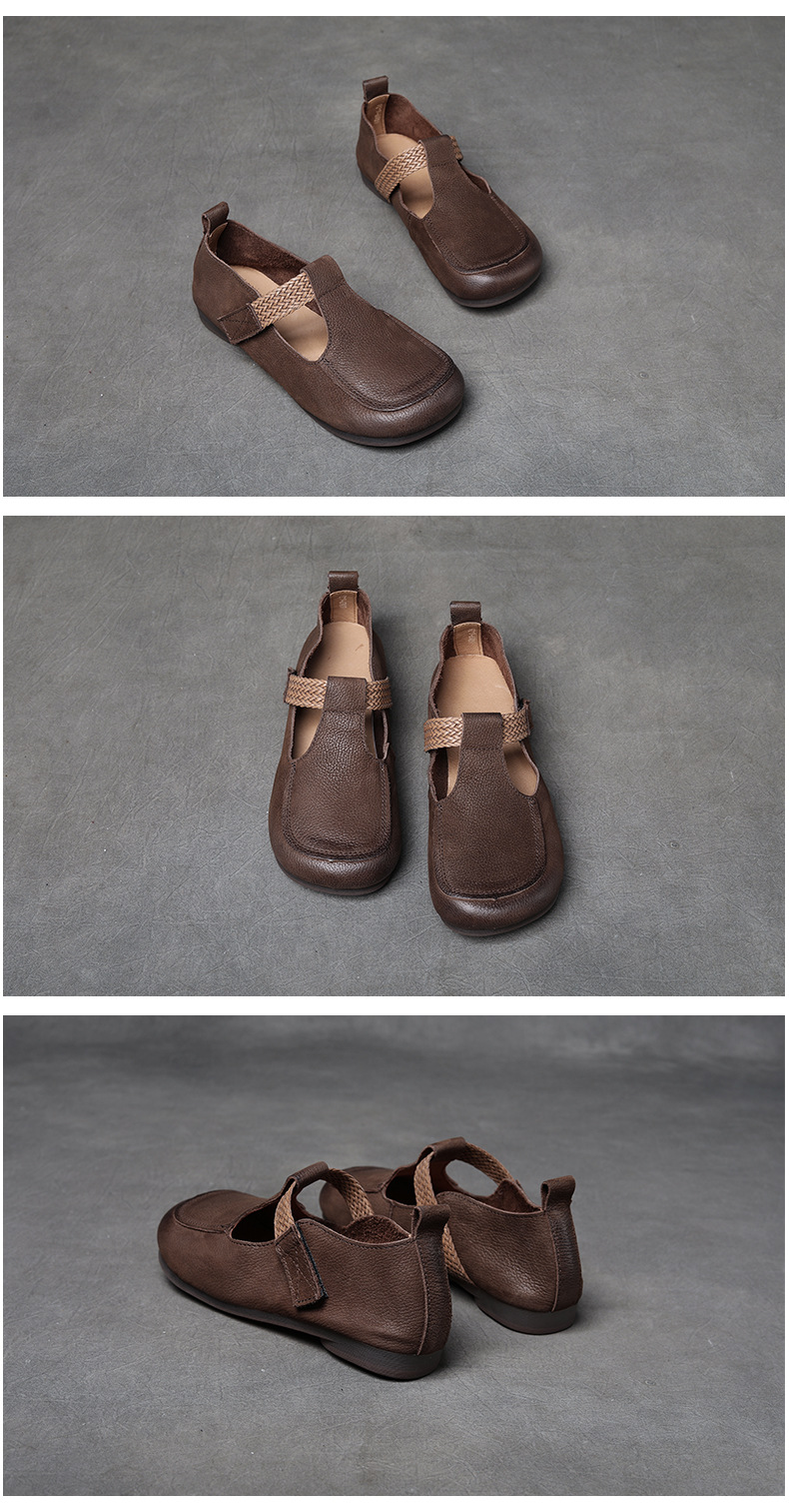 njyxdsy Brown Genuine leather soft sole retro lazy velcro shallow mouth single shoes